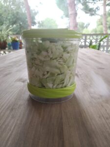 Se produce una fermentación láctica del repollo en un medio anaeróbico controlado , con un poco de sal.